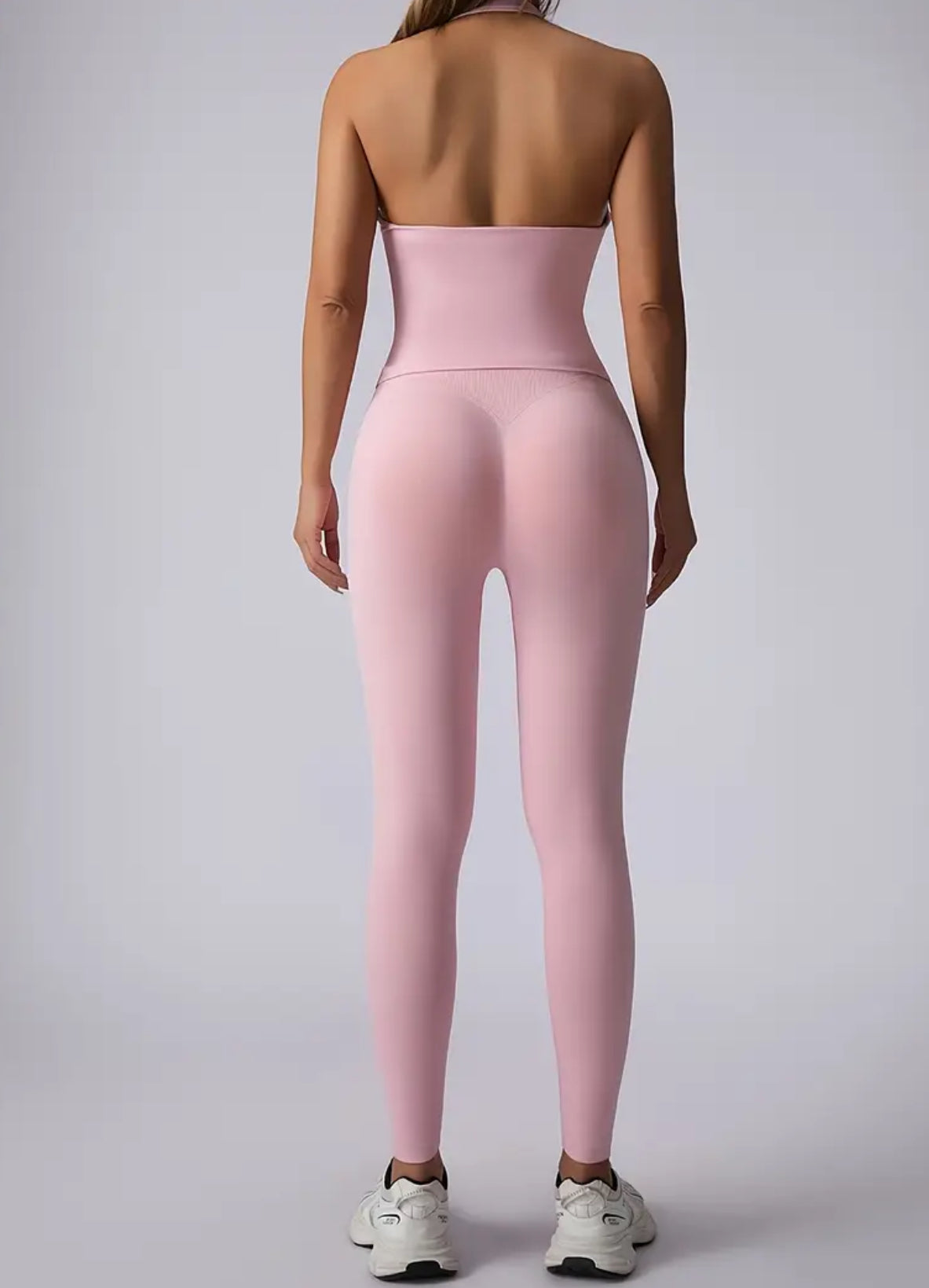 • 2-Piece Set: Includes a stylish backless sports bra and full-length high-waisted leggings.
