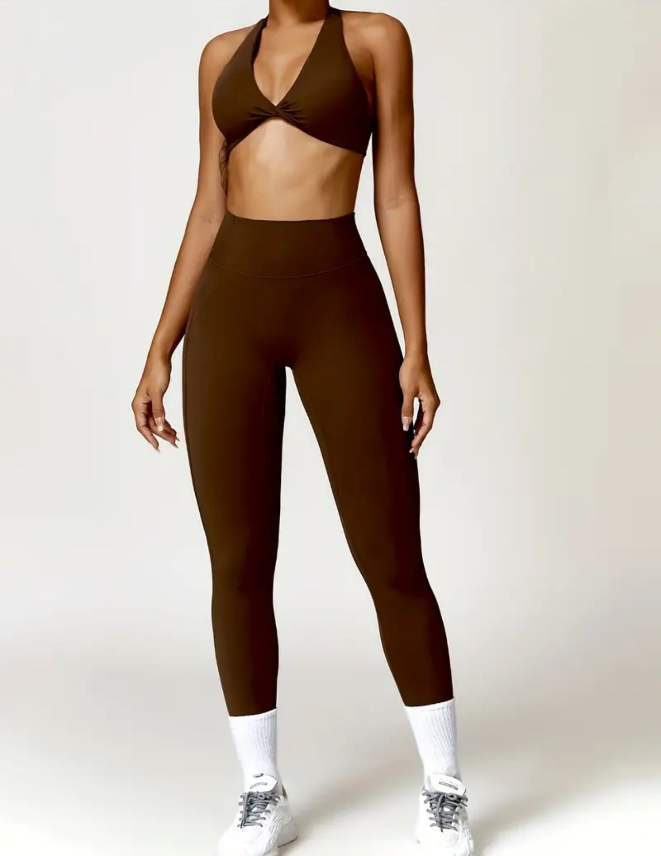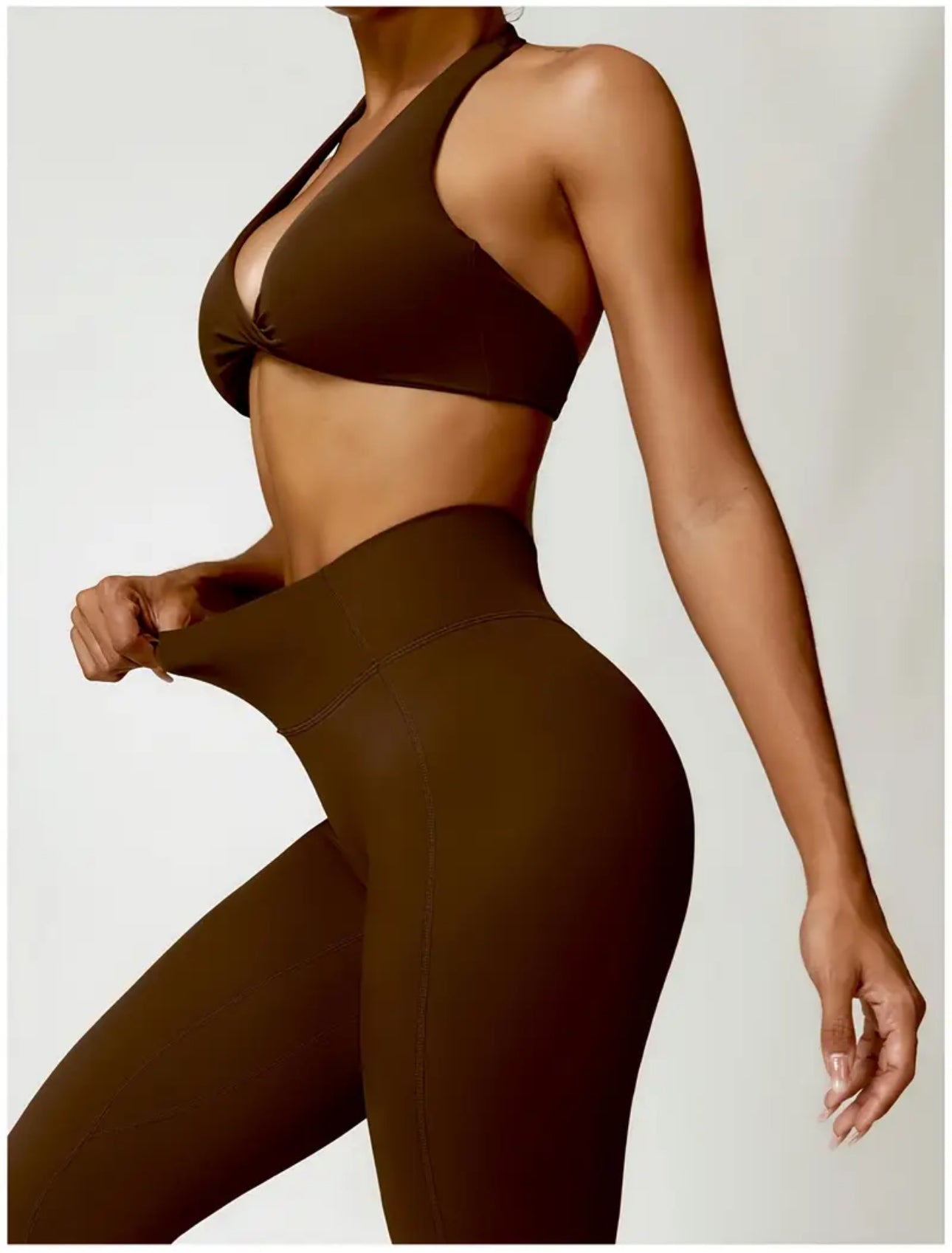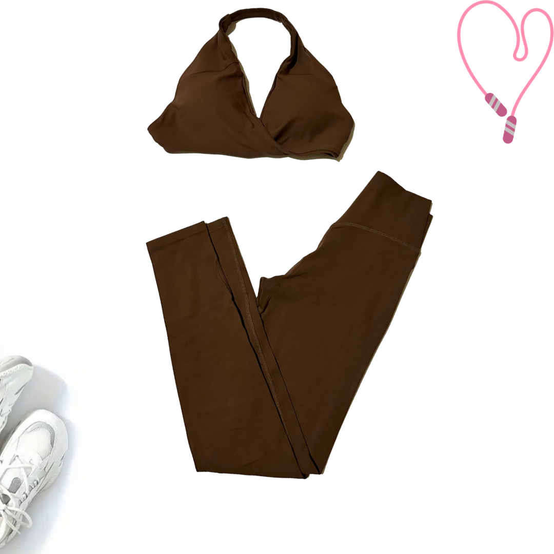- Set me 2 pjesë: Crop sportive dhe strece me bel të lartë që modelojnë barkun.